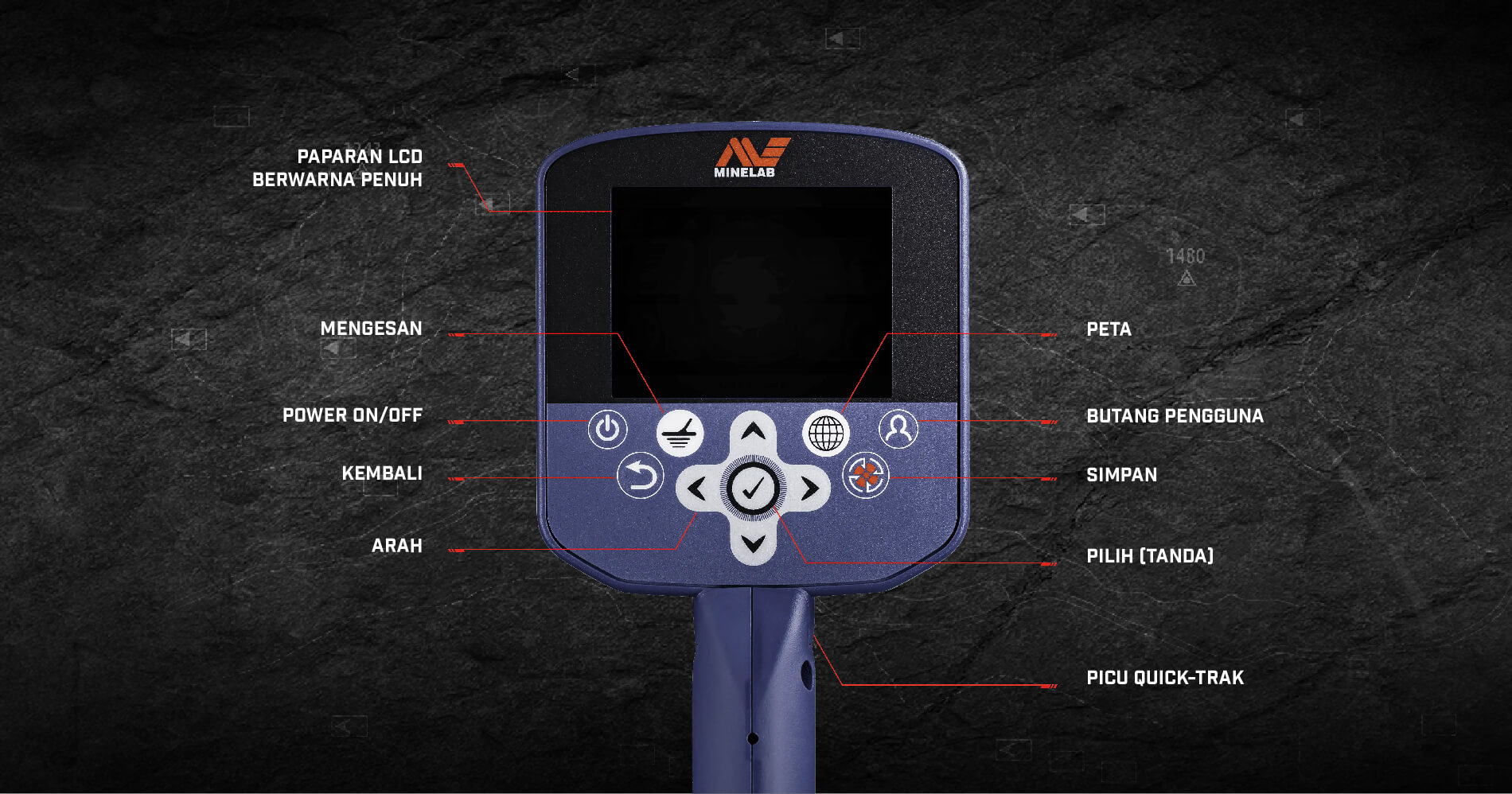 Sistem menu mesra pengguna mengelompokkan fungsi di bawah bahagian Detect dan Map, dengan akses cepat ke semua tetapan. Menggunakan panduan yang disediakan, anda tidak perlu menjadi pakar untuk mencari emas!