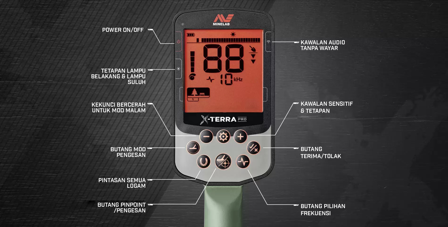 Dengan kemahiran yang semakin meningkat, X-TERRA PRO menawarkan ruang untuk berkembang dengan PRO-SWITCH (Teknologi Kekerapan Tukar), membolehkan anda menetapkan kekerapan kepada 5, 8, 10, atau 15 kHz dengan hanya menekan satu butang, menguasai sebarang persekitaran atau situasi. Dengan peningkatan seperti sistem shaft boleh lipat 3 keping karbon-fiber dan kawalan audio yang canggih, serta ciri-ciri lengkap seperti Lampu Suluh Pod Kawalan dan Getaran Pegangan Tangan, tidak ada masa yang lebih baik untuk menyertai revolusi Minelab EQUINOX.