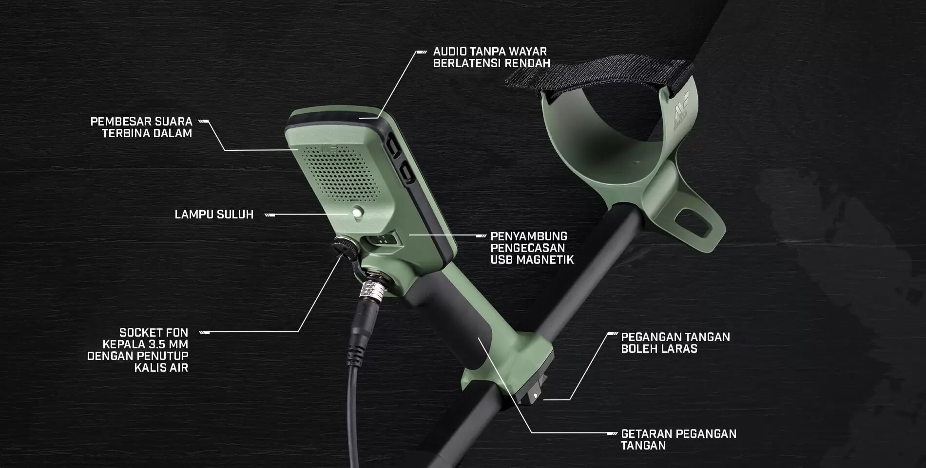 IP68 kalis air sepenuhnya sehingga 16 kaki dan dilengkapi dengan ciri seperti 5 mod audio, lampu suluh pod kawalan, dan getaran pegangan tangan, anda akan mengesan seperti seorang profesional dari saat anda mula mengayunkan pengesan.