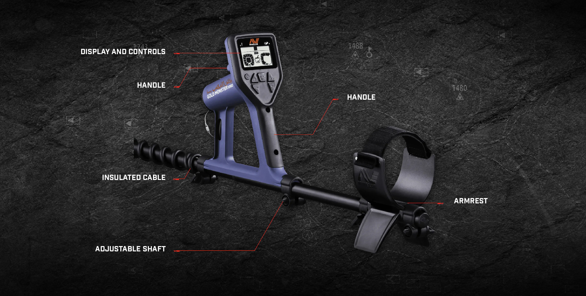 When purchasing the Gold Monster 1000 detector, know that it comes with various accessories. Get to know the accessories of the Gold Monster 1000: 1 Gold Monster detector; 1 5-inch DD coil; 1 pair of Minelab headphones; 1 Minelab digging shovel; 1 coil shaft adapter; shaft clamps; 2 rechargeable lithium-ion batteries; AC Charger; 1 attachable car battery charger cable; 1 set of shafts; Armrest; 1 product introduction guide.